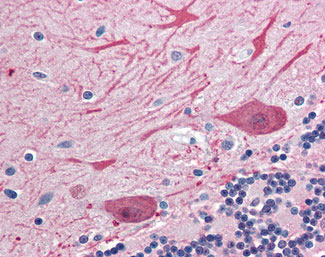 Anti-STX2 / Syntaxin 2 antibody IHC of human brain, cerebellum. |
