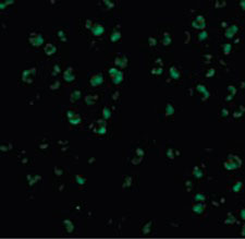 Immunofluorescence of ASK1 in 3T3 cells with ASK1 antibody at 20 ug/ml.