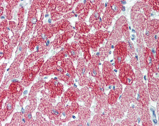 Anti-TNNT2 / CTnT antibody IHC of human rabbit heart. |