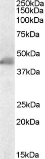 Antibody staining (0.1 ug/ml) of Human Duodenum lysate (RIPA buffer, 35 ug total protein per lane).