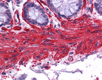 Anti-ACTA2 antibody IHC of human colon, smooth muscle.