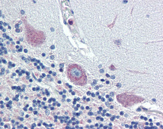 Anti-TGFB3 antibody IHC of human brain, cerebellum. |
