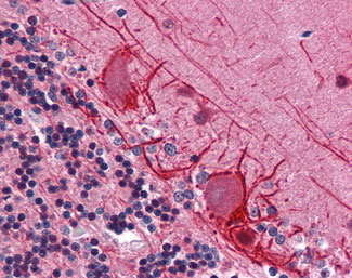 Anti-RCHY1 / PIRH2 antibody IHC of human brain, cerebellum. |