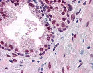 Anti-Androgen Receptor antibody IHC of human prostate. |