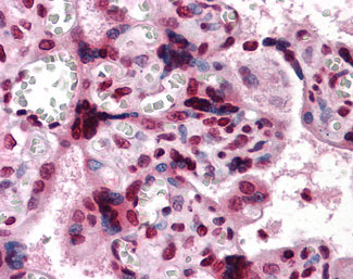 Anti-CSF1 / MCSF antibody IHC of human placenta. |