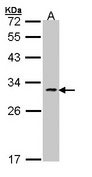 Sample (30 ug of whole cell lysate). A: 293T. 12% SDS PAGE. FASLG antibody diluted at 1:1000.