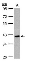 Sample(30 g of whole cell lysate). A: Raji. 7.5% SDS PAGE. C2orf24 antibody diluted at 1:1000.