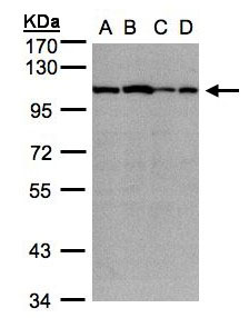 Sample (30 ug of whole cell lysate). A: NIH-3T3. 7.5% SDS PAGE. ACTN2 antibody diluted at 1:1000. |