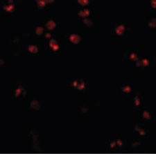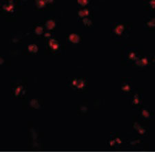 Immunofluorescence of NALP3 in K562 cells with NALP3 antibody at 20 ug/ml. |