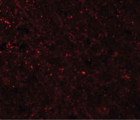 Immunofluorescence of FRMPD3 in rat brain tissue with FRMPD3 antibody at 20 ug/ml.