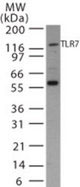 Western blot of TLR7 in Ramos cell lysate using antibody at 1:500.