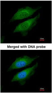 Immunofluorescence of paraformaldehyde-fixed HeLa, using DPRP1 antibody at 1:200 dilution.