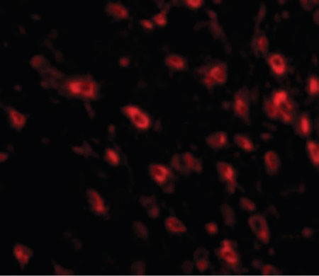 Immunofluorescence of TTBK1 in Human Brain cells with TTBK1 antibody at 20 ug/ml.