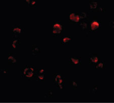 Immunofluorescence of KLHL15 in HeLa cells with KLHL15 antibody at 20 ug/ml.