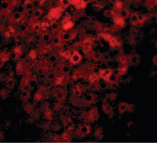 Immunofluorescence of JMJD1B in rat liver tissue with JMJD1B antibody at 20 ug/ml.