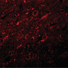 Immunofluorescence of SYNGR2 in rat brain tissue with SYNGR2 antibody at 20 ug/ml.