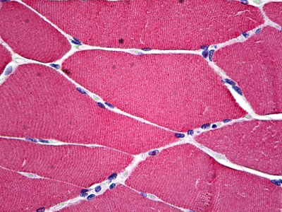 Anti-Actin, Muscle antibody IHC of human skeletal muscle. |
