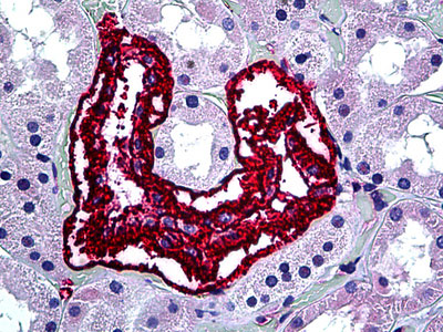 Anti-INHA / Inhibin Alpha antibody IHC of human kidney. |
