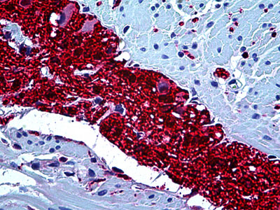 Anti-S100A6 antibody IHC of human colon, myenteric plexus. |