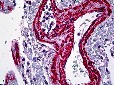 Anti-ACTA2 antibody IHC of human lung, vessels. |