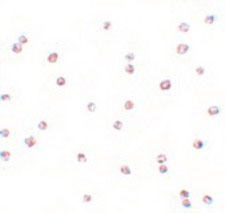 Immunocytochemistry of FOXO3 in A-20 cells with FOXO3 antibody at 4 ug/ml.