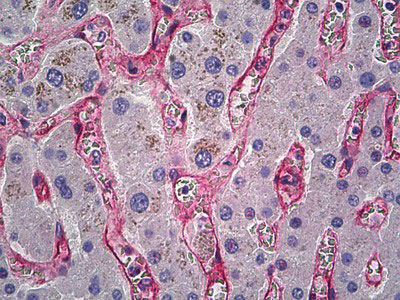 Anti-ENG / CD105 antibody IHC of human liver, endothelium. |