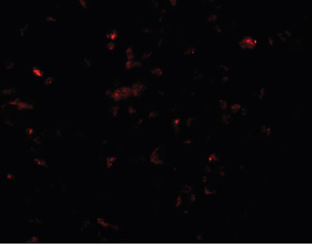 Immunofluorescence of SCRN3 in 293 cells with SCRN3 antibody at 20 ug/ml.