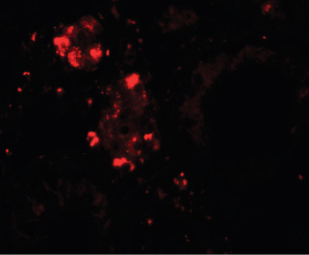 Immunofluorescence of WDR92 in human testis tissue with WDR92 antibody at 20 ug/ml.