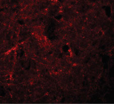 Immunofluorescence of NALP7 in human brain tissue with NALP7 antibody at 20 ug/ml.