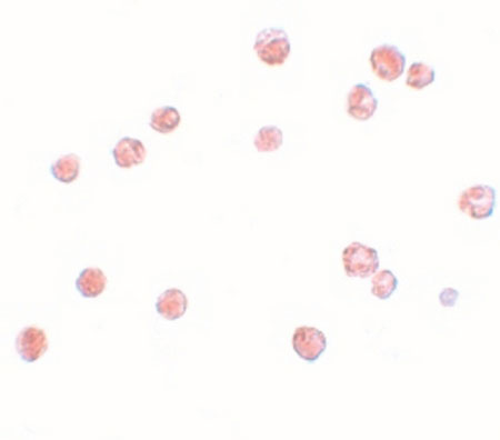 Immunocytochemistry of NALP13 in K562 cells with NALP13 antibody at 2.5 ug/ml.