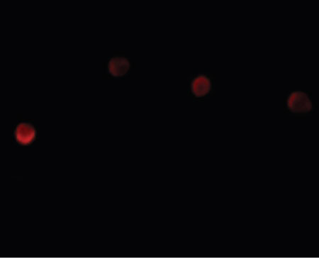 Immunofluorescence of PLAC1 in HeLa cells with PLAC1 antibody at 20 ug/ml. |