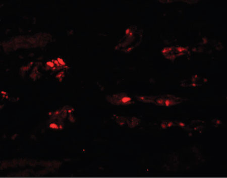 Immunofluorescence of STOX2 in human kidney tissue with STOX2 antibody at 20 ug/ml.