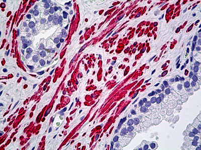 Anti-DES / Desmin antibody IHC of human prostate. |
