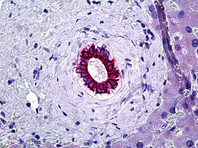 Anti-KRT8 / Cytokeratin 8 antibody IHC of human liver, bile duct. |