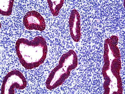 Anti-EPCAM antibody IHC of human uterus, endometrium. |