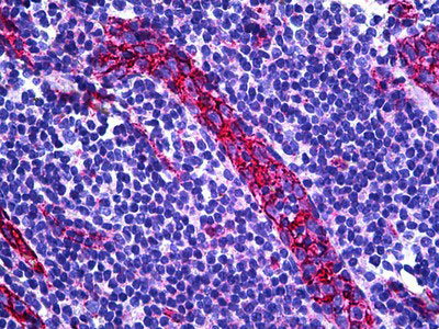 Anti-CD31 antibody IHC of human tonsil, vessel. |