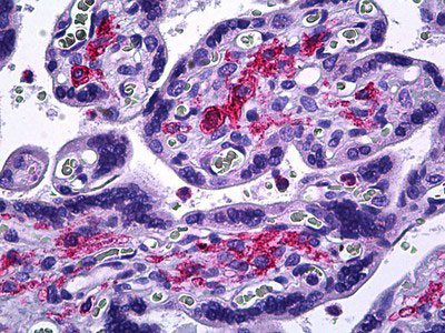 Anti-MMP11 antibody IHC of human placenta.