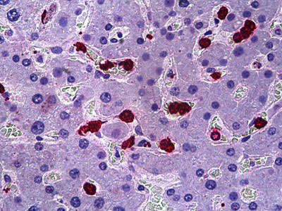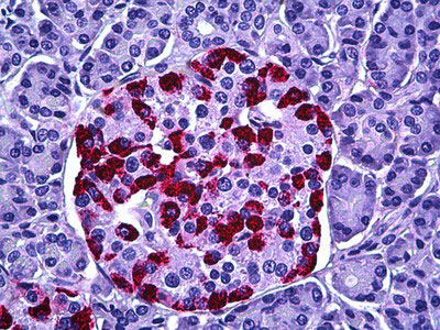 Anti-HGS antibody IHC of human pancreas, islets of Langerhans. |