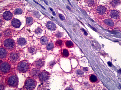 Anti-PDK1 antibody IHC of human testis, spermatogonia. |