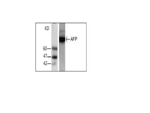 Anti-AFP recognizes AFP expression in HepG2 whole cell lysate.
