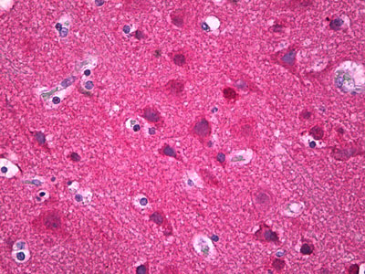 Anti-IRX3 antibody IHC of human brain, cortex neurons. |