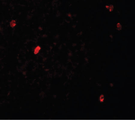 Immunofluorescence of FBXL16 in human spleen tissue with FBXL16 antibody at 20 ug/ml.