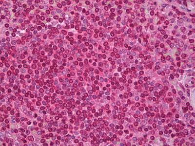 Anti-SYK antibody IHC of human tonsil.