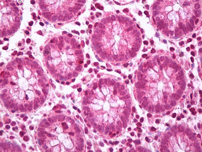 Anti-FAK antibody IHC of human colon, lymphocytes. |
