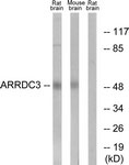 Western blot of extracts from rat brain/mouse brain cells, using ARRDC3 Antibody.