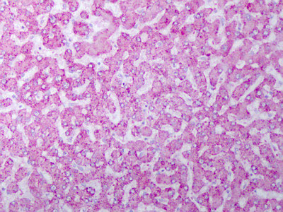 Anti-FGF2 / BFGF antibody IHC of human liver, hepatocytes. |