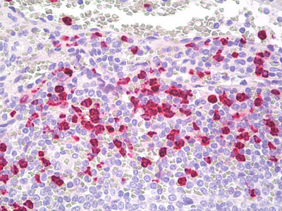 Anti-LF / Lactoferrin antibody IHC staining of human spleen, neutrophils. |