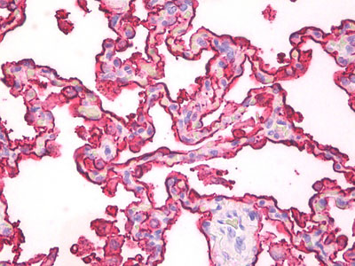 Anti-MUC1 antibody IHC staining of human lung. |