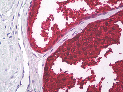Anti-PSA antibody IHC of human prostate. |