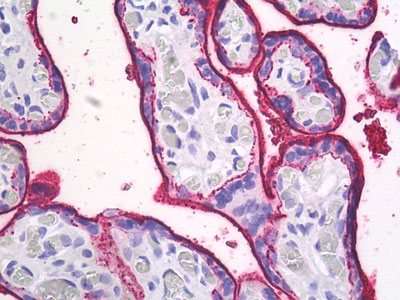 Anti-ALPP / PLAP / ALP antibody IHC of human placenta, trophoblast. |